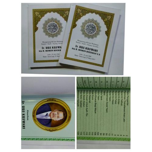 14 08 2019 Spesifikasi Buku yasin 224 Halaman 1 Penerbit Era Jaya 2 Buku Kertas Net Peaper 3 Hard Cover Emas 4 Tambahan Foto dan data Almarhum 5 Kata Pengantar pihak keluarga 6. Kata-kata mutiara untuk ibu yang ditulis di daftar redaksi buku Yasin bisa anda buat seperti ini. 0815 8888 55130 contoh redaksi dalam buku yasin paket terbungkus rapi demi menjaga privasi anda rp.